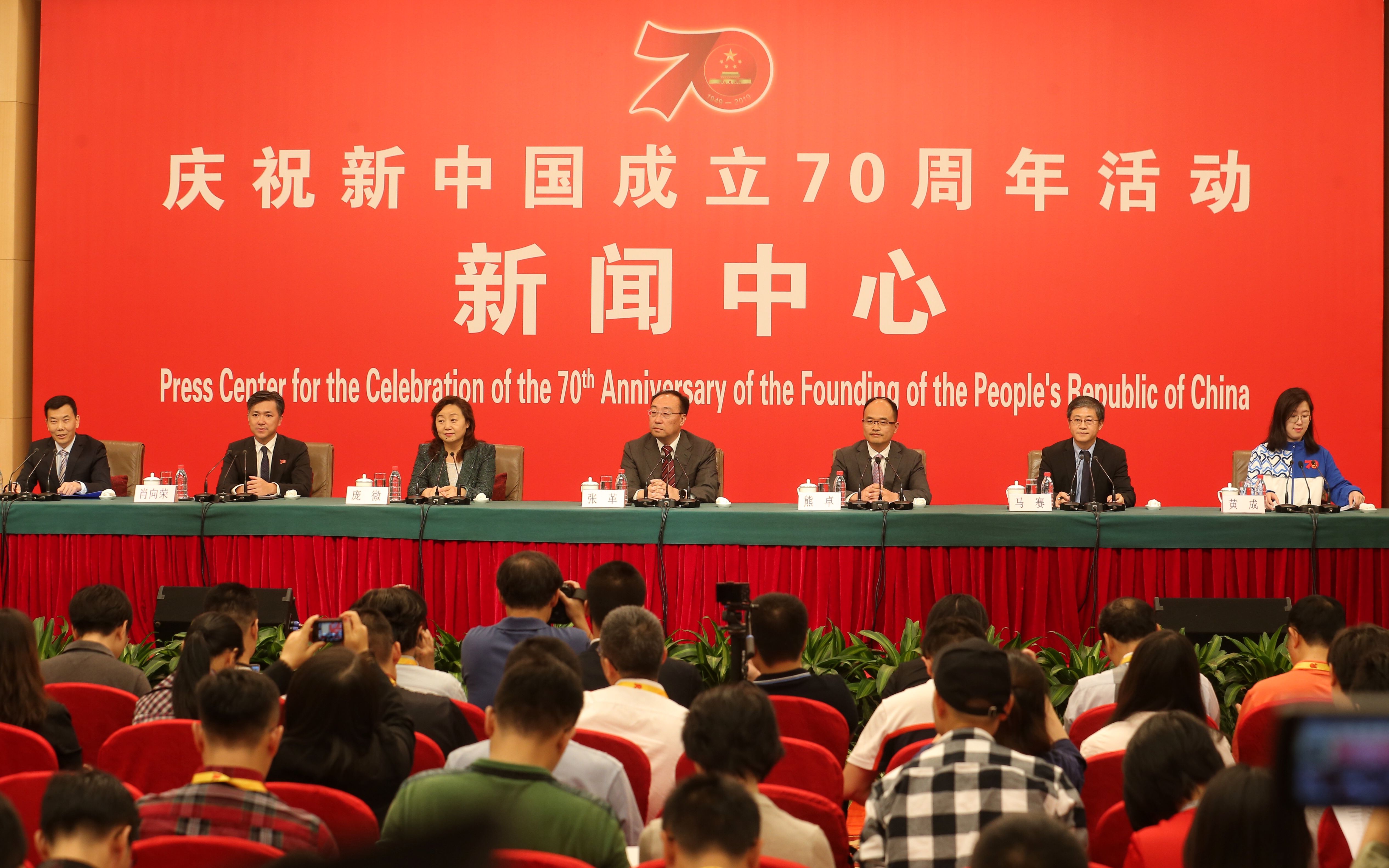 9月25日,庆祝中华人民共和国成立70周年活动新闻中心在梅地亚中心二层新闻发布厅举办第二场专题集体采访活动。摄影/新京报记者 王贵彬