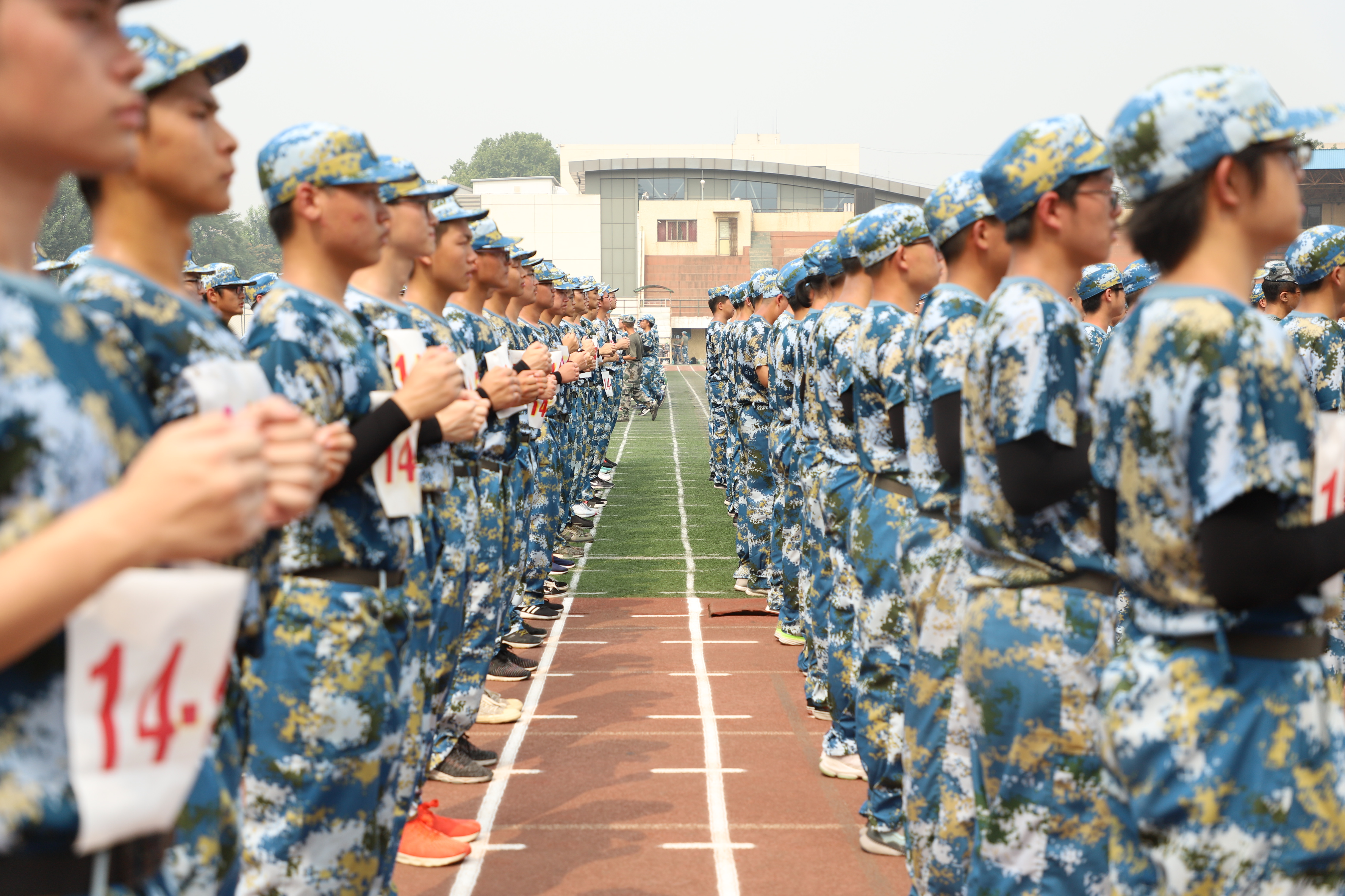 基础训练阶段,正值北京的三伏天。王兵和其他学生、老师被分成多个分队,每天5、6个小时,在北工大操场进行训练。