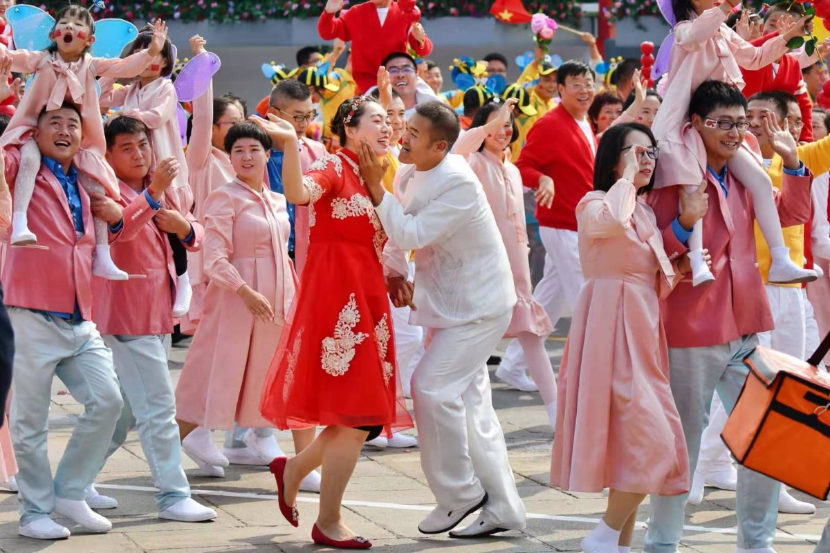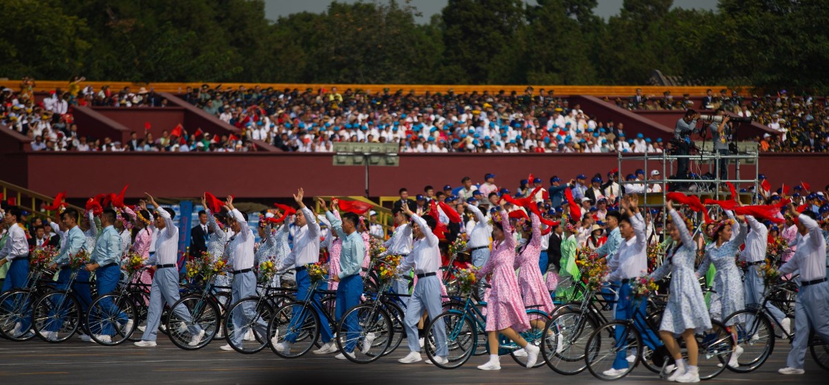 与阅兵分列式不同,在群众游行中,没有人喊“向右看”,那么各方阵是如何在最恰当的时候展现出游行主题高潮部分的?