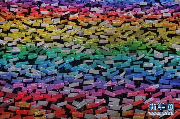 联欢活动光艺总导演沙晓岚介绍,整场表演的重点之一是3290名群众演员每人举持一个光影屏,共同构成“巍峨的长城”“飘曳的风筝”“展翅的和平鸽”“飘动的五星红旗”等令人叹为观止的主题巨幅动图。这是北京理工大学团队多年研发的数字表演与仿真高科技成果。