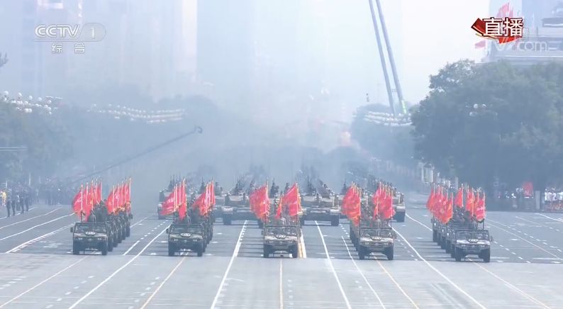 刘粤军上将、赵宗岐上将、朱生岭上将与王建武中将、李桥铭中将五大战区主要指挥员,在阅兵中任战旗方队领队。在他们五人引领下,载着100面荣誉战旗的猛士车缓缓驶过天安门。