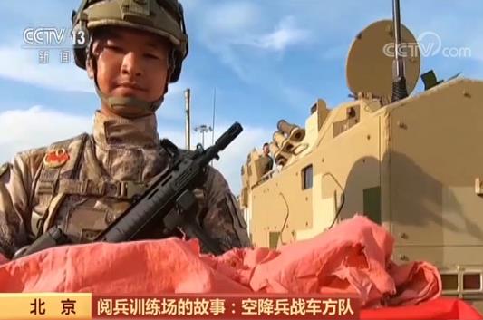 这是空降兵战车方队装备停放场,这位受阅队员叫黄士祥。空降兵某旅“上甘岭特功八连”一班班长。这次受阅,黄士祥还有一项特殊的任务,他的战车里,将承载着一份与众不同至高的荣誉。