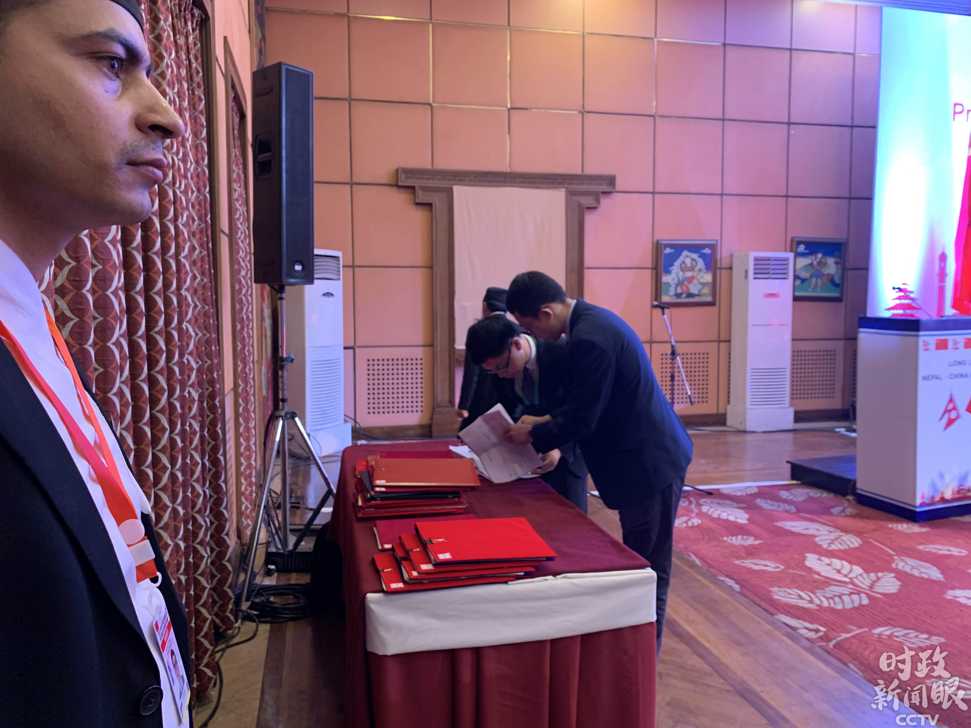 △工作人员正在准备将要交换的合作文本。(央视记者沈忱拍摄)