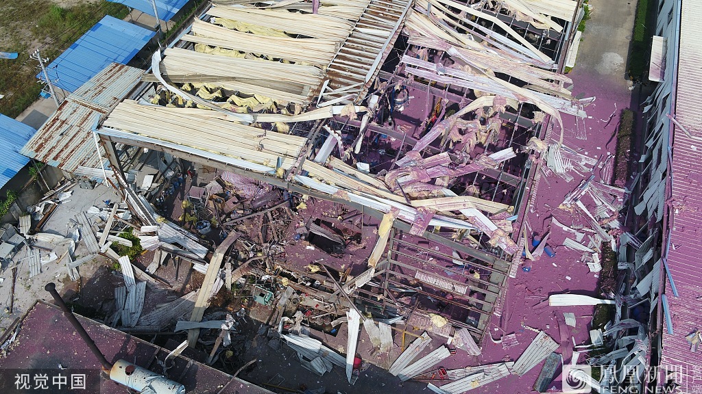 10月16日报道,10月15日11时20分,广西玉林市陆川县北部工业园广西兰科新材料科技有限公司反应釜发生爆炸(未起火),目前,经现场医护人员确认,事故已造成4人死亡、2人重伤、4人轻伤。搜救工作已结束。图为爆炸后的厂区。来源:视觉中国
