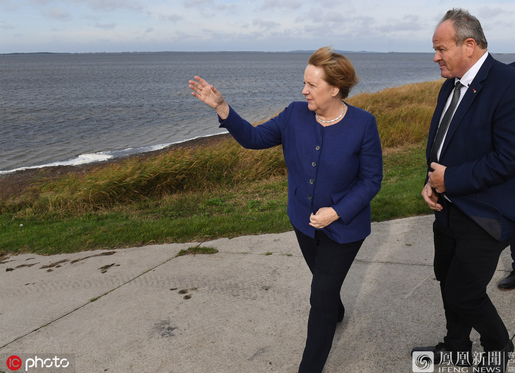 10月26日报道,当地时间2019年10月25日,德国乌姆曼茨岛,德国总理默克尔参观当地一个新开业的旅游中心,并为一辆电动巴士揭幕。图为默克尔在当地视察时,站在堤坝上,头发被风吹乱。来源:视觉中国 IC photo