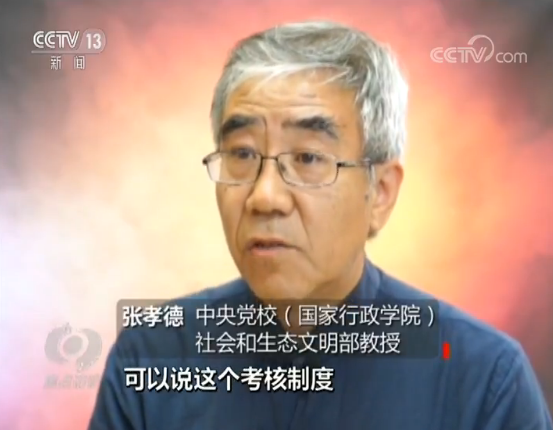 中央党校(国家行政学院)社会和生态文明部教授 张孝德:我觉得其中力度最大的一个制度,就是对生态文明建设各级政府的考核制度,可以说这个考核制度我们把它称之为有史以来最严格的制度。它的严格性主要表现在哪儿呢?第一个就是说环境责任要终身追究,另外一个它的考核制度是党政同责,这种力度以前是没有的。