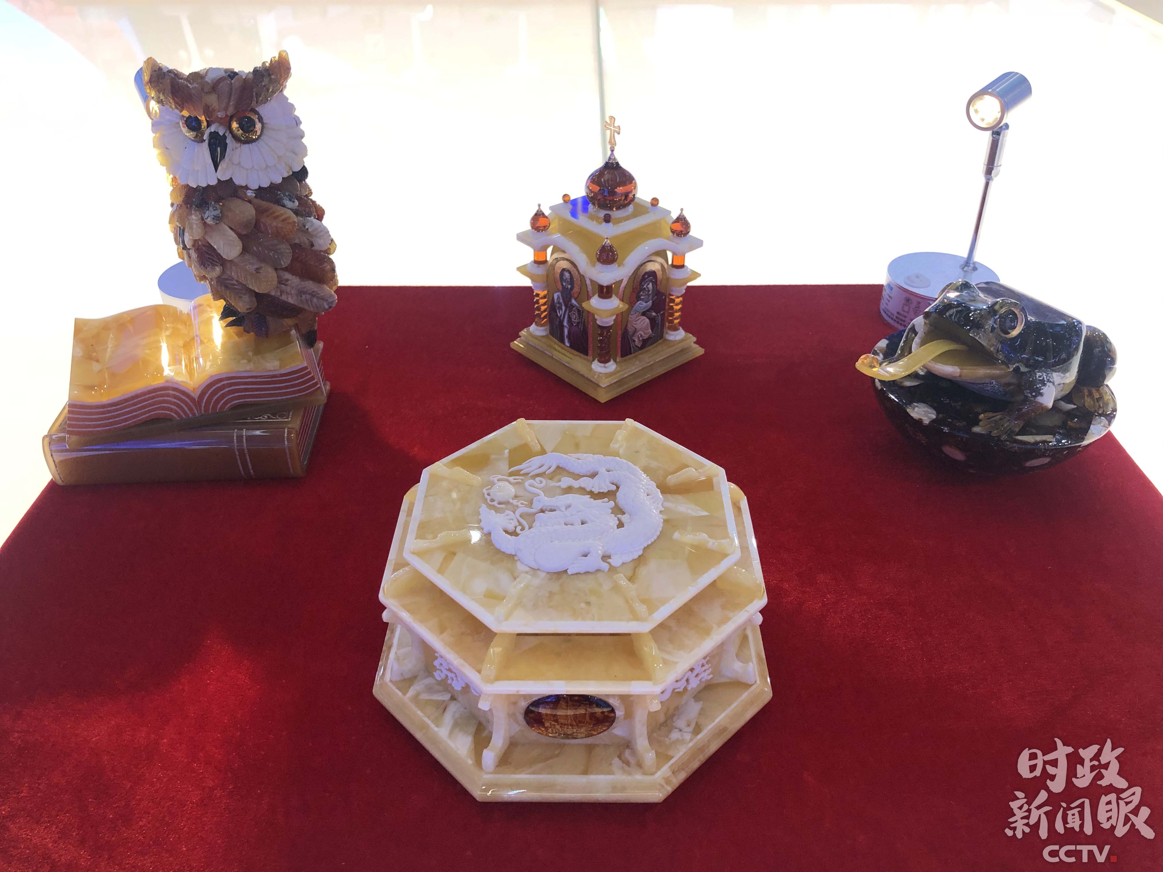△俄罗斯馆里展出的工艺品。(央视记者鄂介甫拍摄)