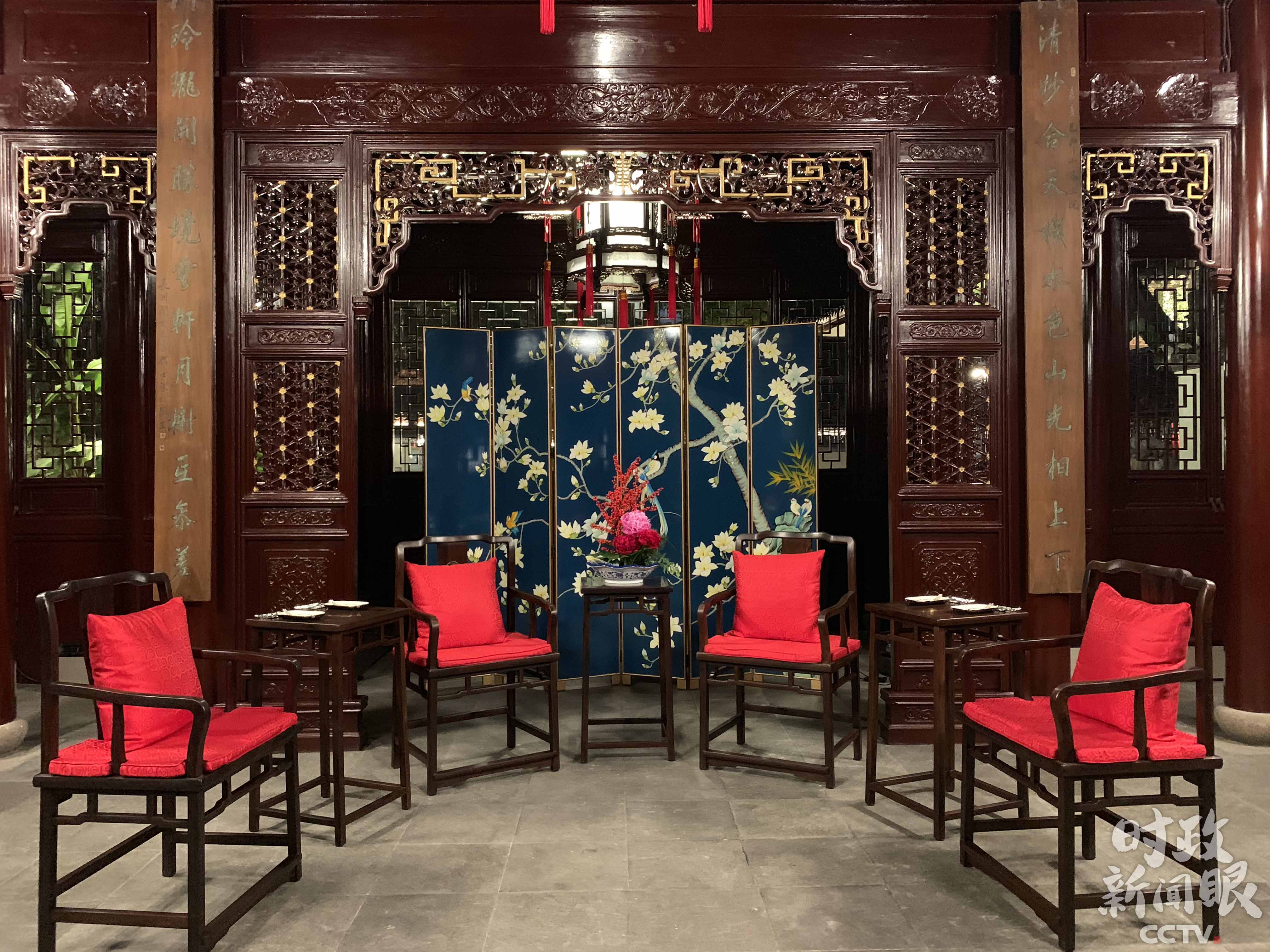 △豫园是江南古典园林,始建于明代。这是当晚两国元首夫妇落座的玉华堂。(央视记者石丞拍摄)