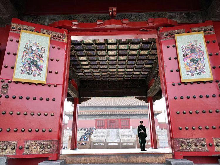 鼠年春节将至,故宫挂上去年同款春联和门神
