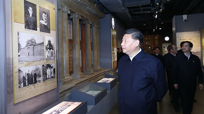 离开会展中心,习近平乘车前往位于云南师范大学校园内的国立西南联合大学旧址考察调研。1937年全面抗战爆发后,北大、清华、南开三校被迫南迁,几经辗转安顿在昆明。在昆8年,西南联大广大师生遵循刚毅坚卓的校训,满怀科学救国的理想,同舟共济、同仇敌忾,抗战中大批学生投笔从戎、效命疆场,抗战胜利后联大师生积极参加反内战民主运动,谱写了可歌可泣的爱国主义篇章。