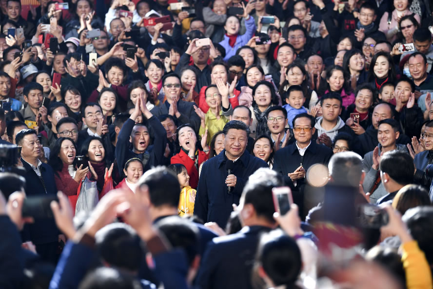 展厅外广场上挤满了前来置办年货的群众。看到总书记来了,大家围拢上来,齐声欢呼“习主席好”。习近平同大家亲切握手,向云南群众、向全国各族人民、向港澳台同胞和海外侨胞致以新春祝福,祝福大家新的一年里身体健康、阖家幸福、和气致祥、事业进步,祝愿各族人民安心、顺心、开心,生活越来越好,祝愿伟大祖国欣欣向荣。