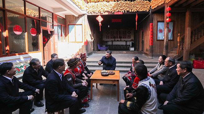 保山市所辖腾冲市清水乡三家村曾是建档立卡贫困村,2017年全村已实现脱贫。19日下午,习近平来到三家村,了解脱贫攻坚情况。当地干部告诉总书记,近年来,三家村积极发展乡村旅游、种养殖业、劳务输出,完善基础设施、改善人居环境,贫困发生率从2014年的21%降至目前的0.45%。习近平对此表示肯定。他强调,全面建成小康社会,一个民族都不能少。要加快少数民族和民族地区发展,让改革发展成果更多更公平惠及各族人民。