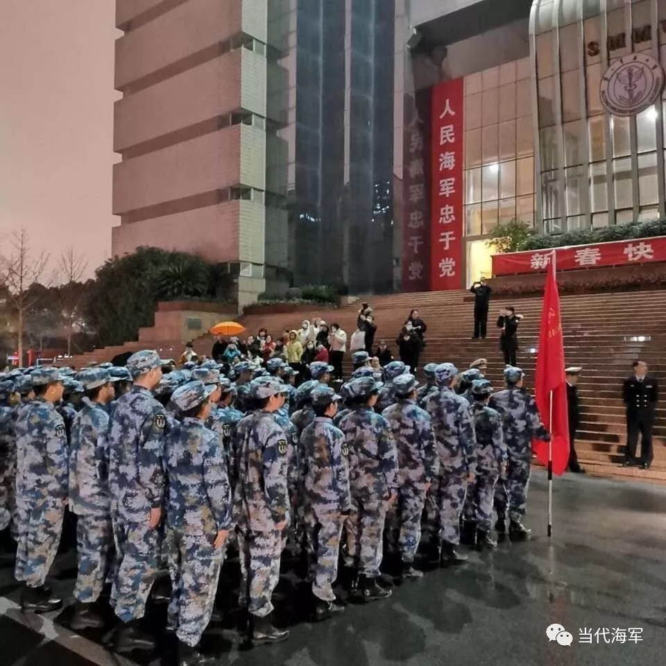 由海军军医大学组建的150人的医疗队,在万家团圆时集结完毕,告别家人从虹桥机场乘军机赴武汉参与防疫救援任务。