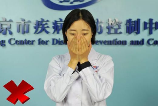 如果一时情急,来不及准备,可以用肘部衣袖遮掩。