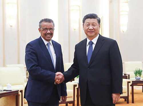 1月28日,习近平在北京人民大会堂会见世界卫生组织总干事谭德塞。