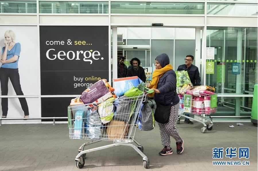 3月15日,在英国伦敦,人们满载采购的物品离开一家超市。 综合英国卫生当局14日发布的数字,英国新冠肺炎确诊病例数累计已达1140例。随着疫情升级,英国民众开始囤积生活必需品。