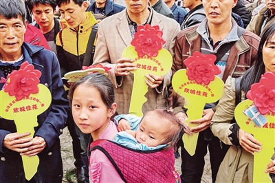 会泽县易地扶贫搬迁的乡亲们领取会泽新城一期新居钥匙。