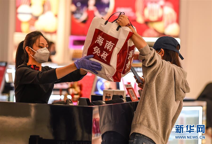 顾客在海口日月广场免税店内购物(2月20日摄)。新华社发(蒲晓旭 摄)