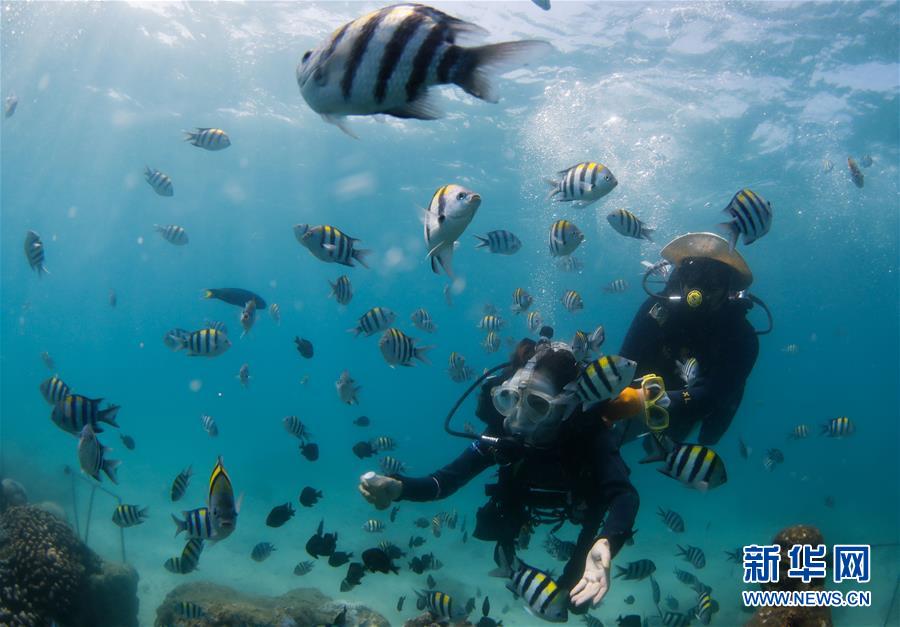 游客在分界洲岛海域体验潜水(2019年7月20日摄)。新华社记者 杨冠宇 摄