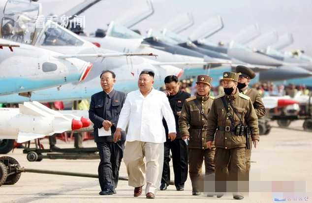 4月10日,金正恩一身便装,视察了西部地区人民军航空与防空军旗下的攻击联队。部分干部或为预防新冠疫情佩戴了口罩,但金正恩没有戴口罩。来源:看看新闻