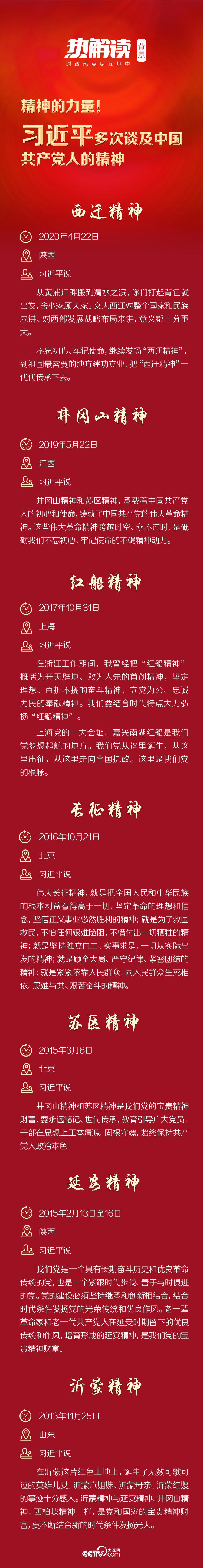精神立则人格立,精神强则国家强。党的十八大以来,习近平不断号召大家发扬长征精神、延安精神、井冈山精神……为大家“补足精神之钙”。