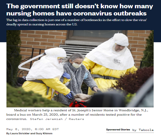 △美国国家广播公司5月8日报道,美国政府仍不清楚养老院新冠肺炎疫情。