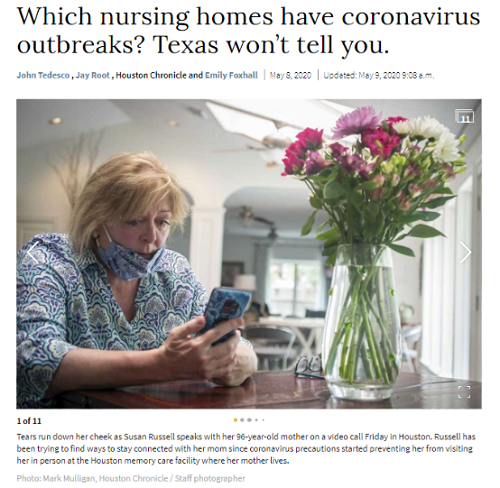 △《休斯敦纪事报》5月8日报道,哪家养老院出现新冠肺炎疫情?得克萨斯州不告诉你。
