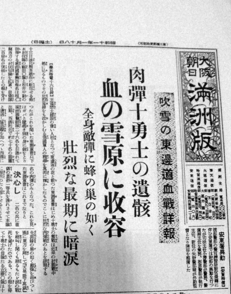 《朝日新闻》“满洲版”中的报道《染血的雪原,肉弹十勇士遗骸收容记》