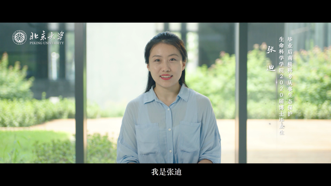 张迪,生命科学学院2020届博士毕业生,毕业后南极科考,从事生态保护。她说:“在水面看一眼江豚,在森林做一次深呼吸,在夏夜听一耳蝉鸣,北大告诉我,广袤的山川湖海都是我们的舞台。”