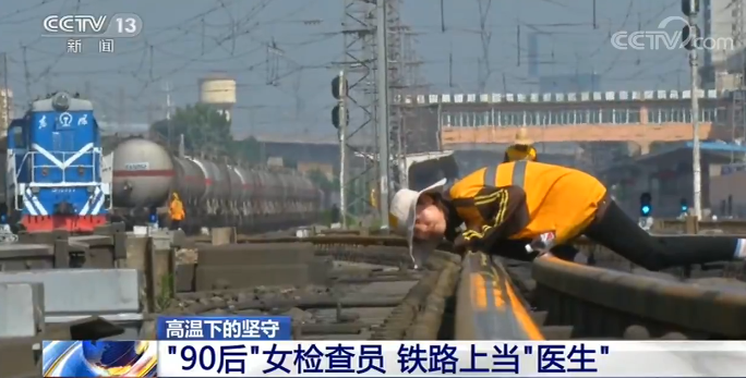 央视网消息:在陕西西安有这样一群“90后”的姑娘,她们的工作又要挨晒又要负重,最考验人的莫过于,她们要趴在50多℃的钢轨上给铁路做检查。