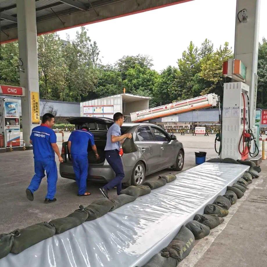 ▲2020年8月19日,洪水即将漫过唐家沱码头阀室,唐家沱码头油库负责人在趸船上长期坚守,带领油库员工搬运防洪沙袋阻挡洪水进入阀室,确保设施设备安全。