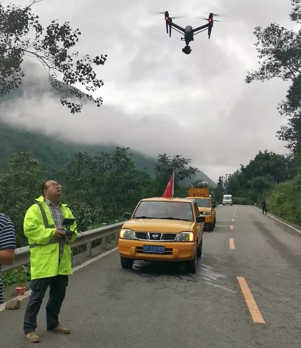 在道路阻断、通信设施受损的地区,无人机也是协助相关部门对道路路基冲毁受损情况进行查勘,传回第一手图片资料,摸清是否具备通行条件最为高效的技术手段。