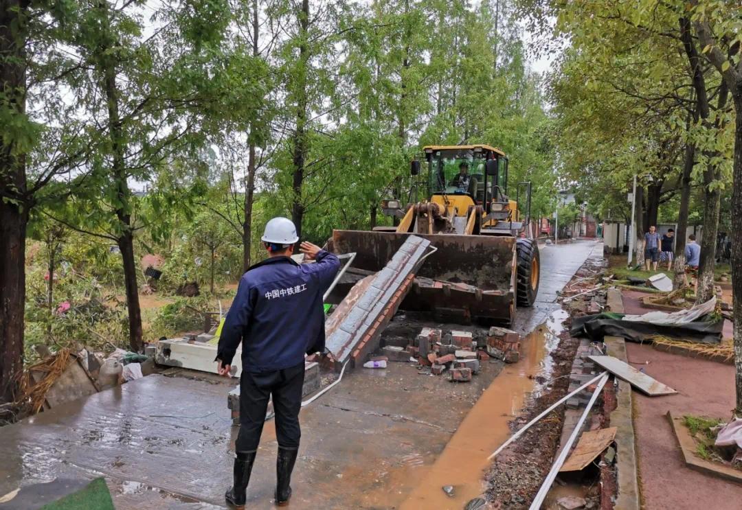 重庆市近期连续多日强降雨天气,江津区长岭村降雨量远远大于同时期降雨量,致使长岭村多条支流水位猛涨,导致群众房屋、农田等被淹,与此同时,部分山体发生小规模滑坡,道路受阻。中建集团重庆轨道交通五号线江跳段项目了解情况后,立即成立防洪排险小组赶赴受灾现场,紧急调配挖掘机、铲车、装载机等大型机械设备对山体滑坡的道路进行清理,并对轨道交通五号线车辆段施工现场唯一一条出入道路进行破除泄洪,最大程度降低群众损失。项目在重庆市江津区长岭村等地组织多名志愿者,组成应急抢险突击队,共投入挖掘机2台、装载车2台、铲车1台,自发开展排除城市内涝工作。