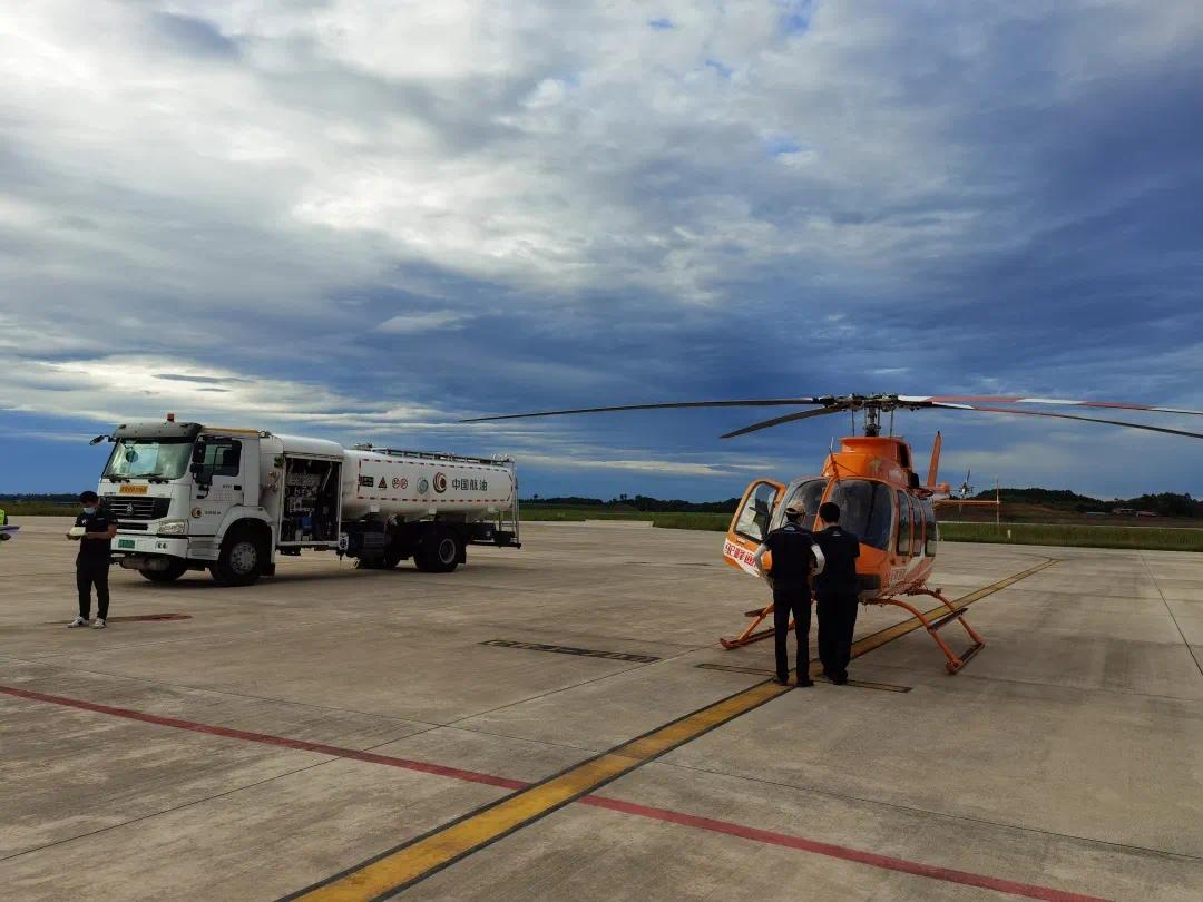 8月18日中午,中国航油接到驼峰通航应急救援任务:机型贝尔预计于18日15:12至16:30在宜宾临时起降。当日18时08分,宜宾供应站圆满完成1架救援直升机应急救援保障任务,加注航煤315升。