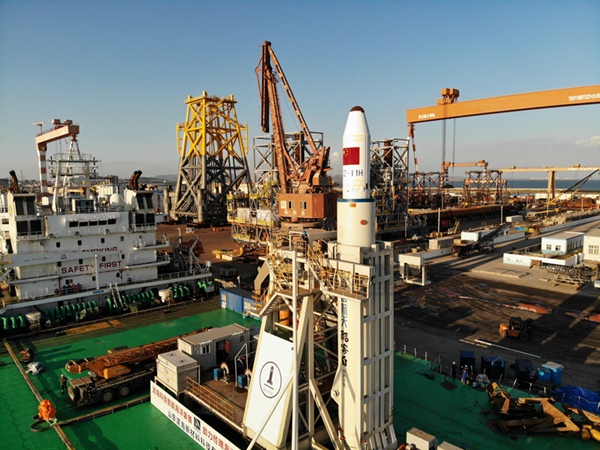 长征十一号在海上发射平台整装待发(史啸 摄)