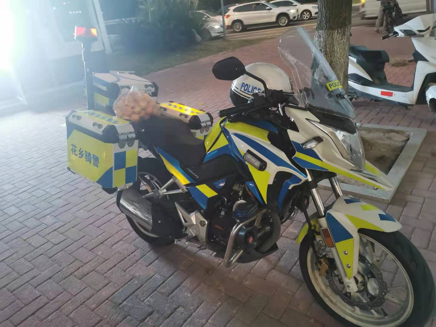 故事本以为到此结束了。没想到,9月24日下午,韦奶奶再次来到该路口岗点,拎着一袋橘子敲了敲交警岗亭的门,但发现交警都在路口执勤,于是“灵机一动”,在路边警用摩托车上放下这袋橘子,准备默默离开。此时,她忽然发现对面执勤的交警正望向这边,于是韦奶奶立定身子,朝着交警挥了挥手,离开了。这暖心的一幕被路边的摄像头记录了下来……