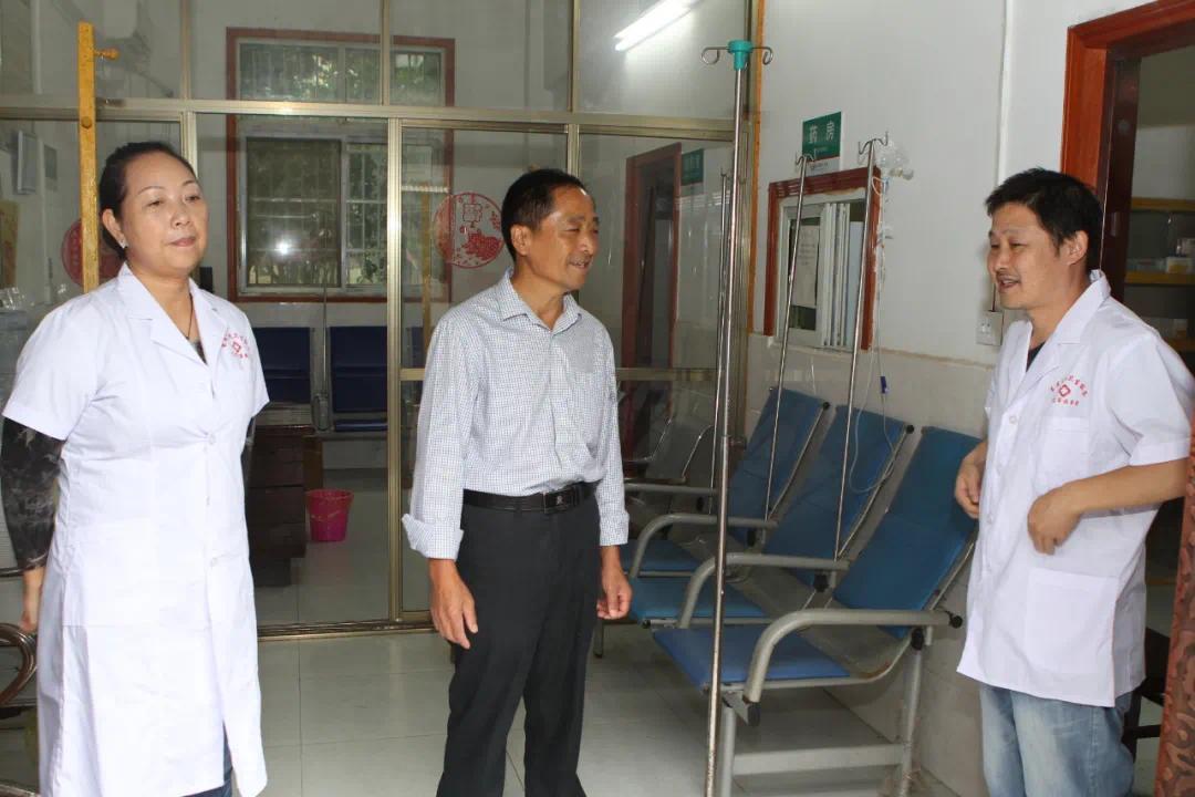 全国人大代表王能干(中)到村卫生站了解建设情况。摄影/戴忠益