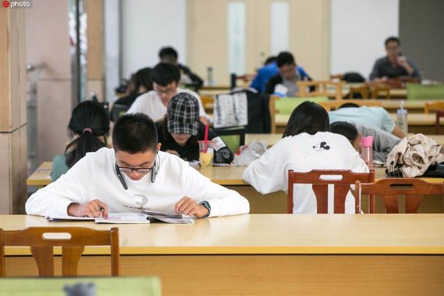 学生们带着课本、复习资料、笔记本电脑等,埋头认真自习。他们中既有刚入校不久的大一新生在预习功课,也有备考年底研究生招生考试的考研生。图书馆内一片寂静,学习氛围浓厚。