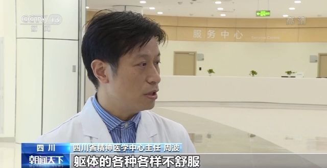 四川省精神医学中心主任 周波:其实还有很大一部分抑郁症患者是表现躯体的症状,躯体的各种各样不舒服。比如说胃肠道的不舒服啊、疼痛啊、心慌啊、尿频啊等等,这样一些症状。