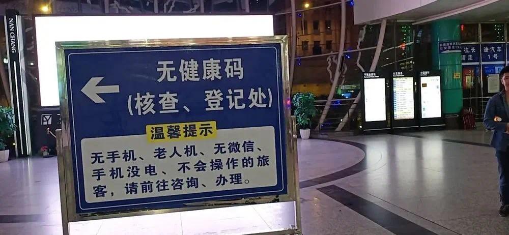 针对老人机、无微信及手机没电、不会操作、无健康码等特殊人群,南昌站和南昌西站在出站口设置相关专用通道,并附温馨提示。邹娴婧 摄