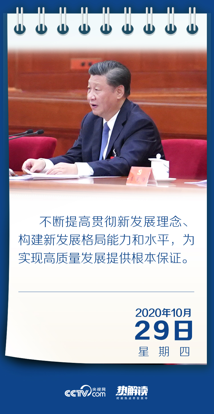 “坚定不移贯彻创新、协调、绿色、开放、共享的新发展理念”“加快构建以国内大循环为主体、国内国际双循环相互促进的新发展格局”“不断提高贯彻新发展理念、构建新发展格局能力和水平,为实现高质量发展提供根本保证”……