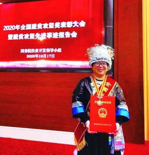 10月17日,刚刚走下领奖台,身着美丽的苗族服装,杨宁站上“2020年全国脱贫攻坚奖”首场事迹报告会讲台,她是当天第一个作报告的代表。