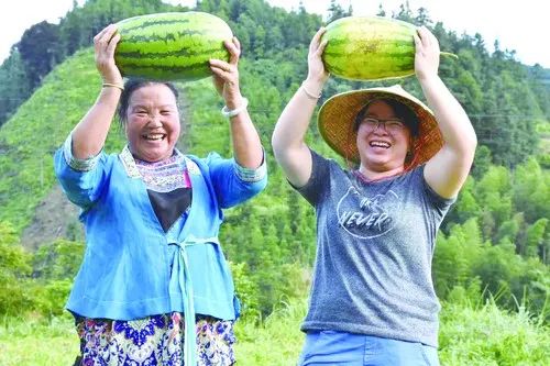 江门村的“泉水西瓜”大又甜。右为杨宁。