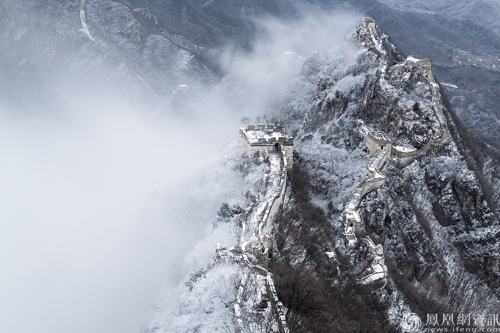 箭扣长城迎降雪 景色壮美
