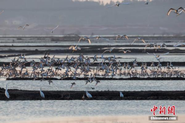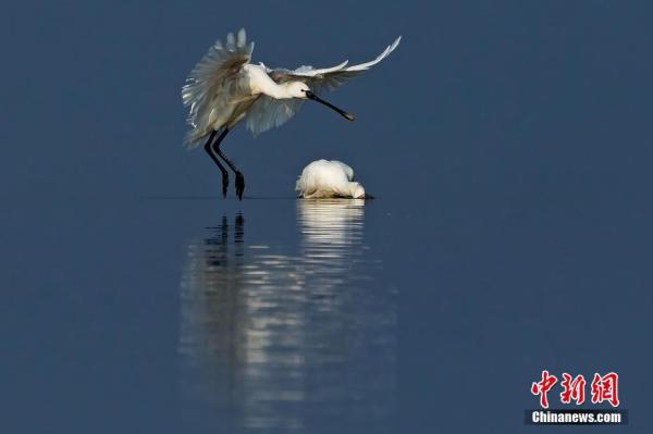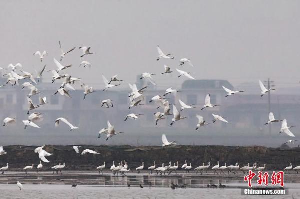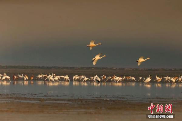候鸟小镇还设立了专业的鸟类医院——白鹤医院,对受伤的鸟类进行治疗,并成立专业的鸟类医疗科研团队。图为鄱阳湖区的过冬候鸟。 江西九江永修县委宣传部供图