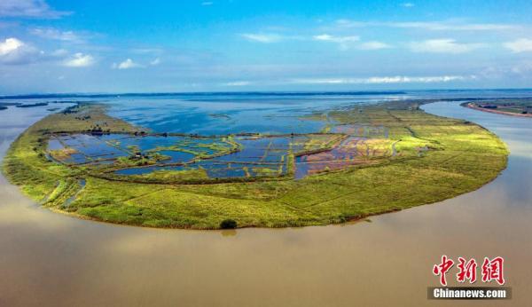 吴城镇地处永修县东北部,鄱阳湖西汊,是以平原为主的滨湖丘陵地区,地形地貌特征为“三山六水一分地”,是江西历史上的四大名镇之一,南纳五河之水、北通长江之道,10 平方公里的水中沙山连绵不绝,60余万亩的湿地草原是世界六大重要湿地之一。图为永修县吴城镇大湖池湿地风光。 江西九江永修县委宣传部供图