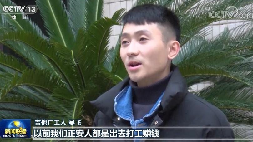吉他厂工人 吴飞:以前我们正安人都是出去打工赚钱,现在很多人都回来创业、工作了,互联网为我们搭建了一条致富路。