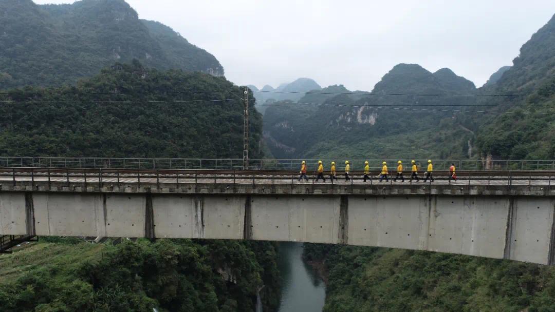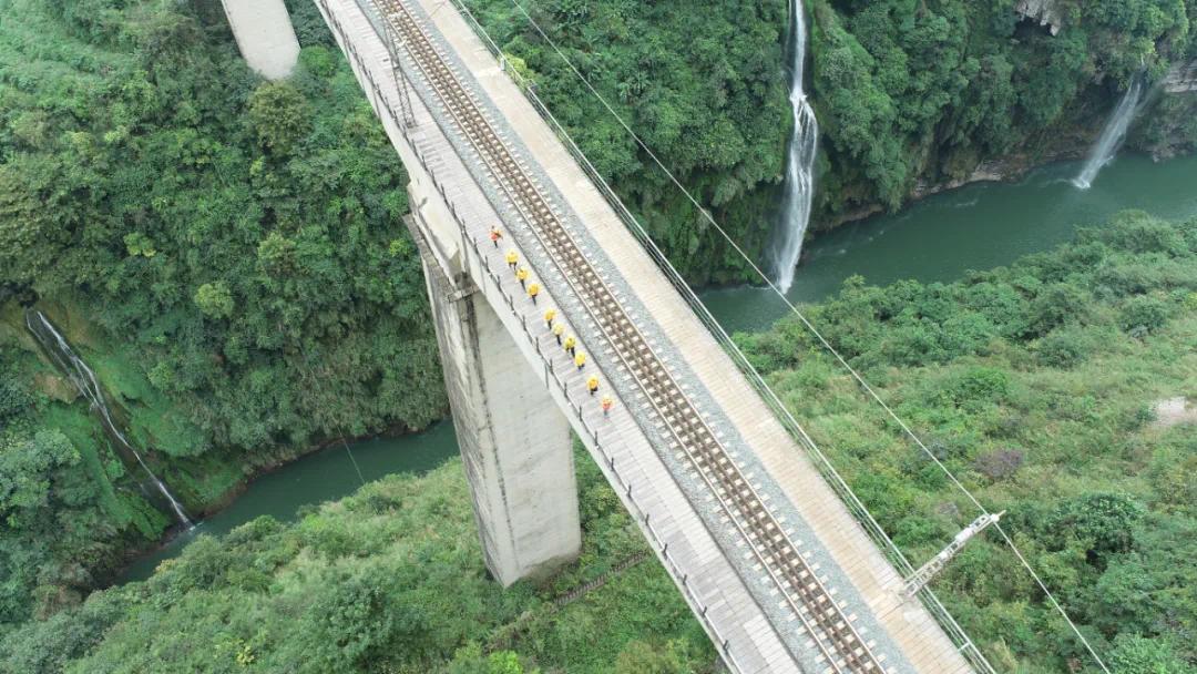 “我是负责桥面安全防护的,每次列车呼啸而过时,都感觉有一股大风迎面而来,要是再瘦点,列车带起的风估计都能把我吹飞。”站在离谷底足足有65层楼高的桥面上,工区里最年轻的女职工黄琳打趣道。