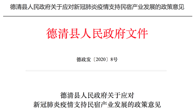 △德清出台针对民宿专项支持政策意见(图片来源:德清县人民政府官方网站)