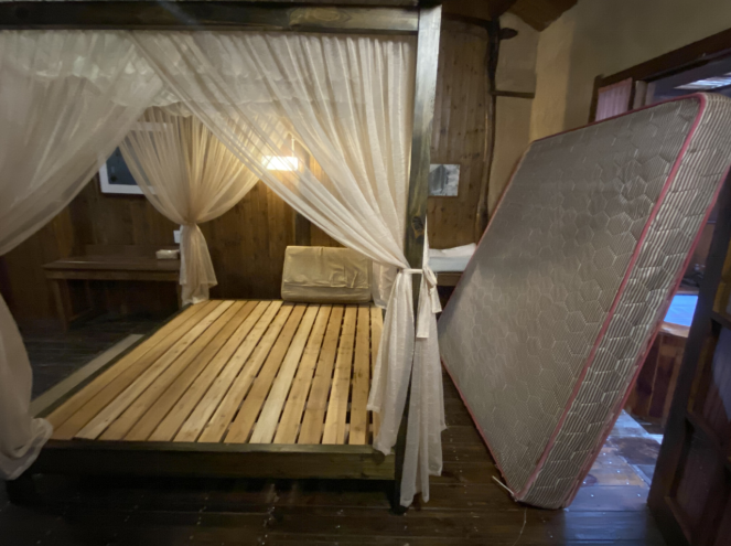 △民宿房间内正在消毒的床垫(总台央广记者李昊摄)